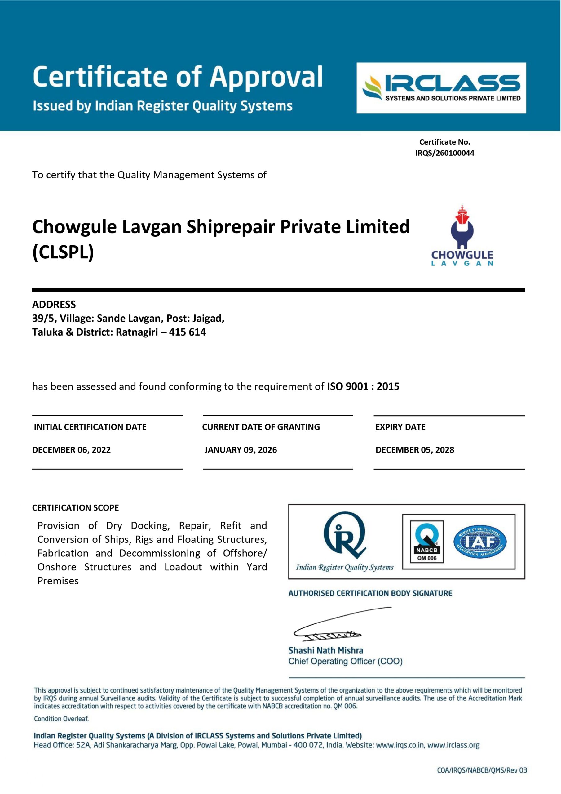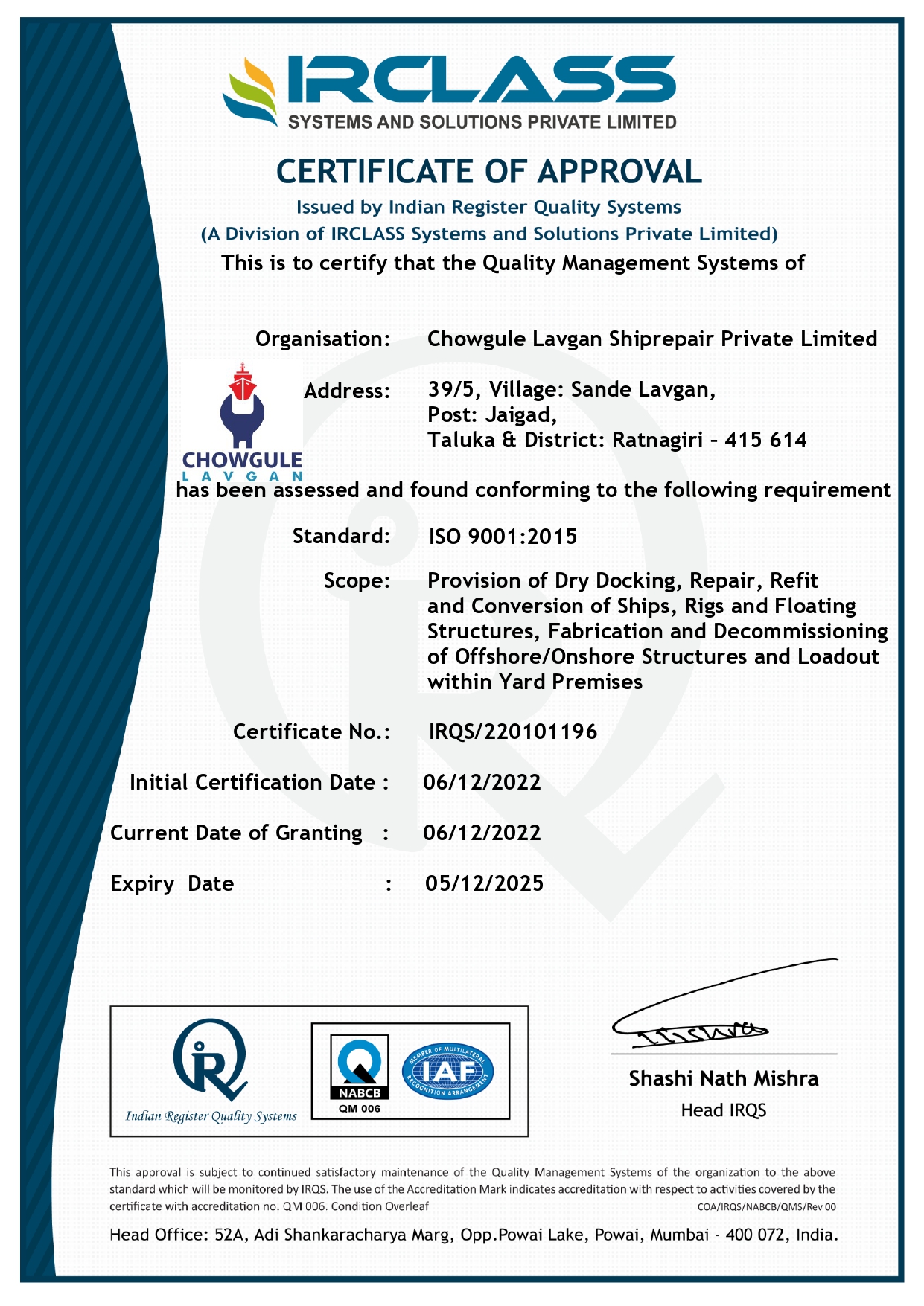 Chowgule Lavgan Shipyard is led by a management team with extensive worldwide expertise in ship repair and seafaring. The shipyard’s core personnel is directly employed by the Company, and we invest in their training and career development initiatives. In addition, we have access to a wide selection of subcontractors for more specialized services.